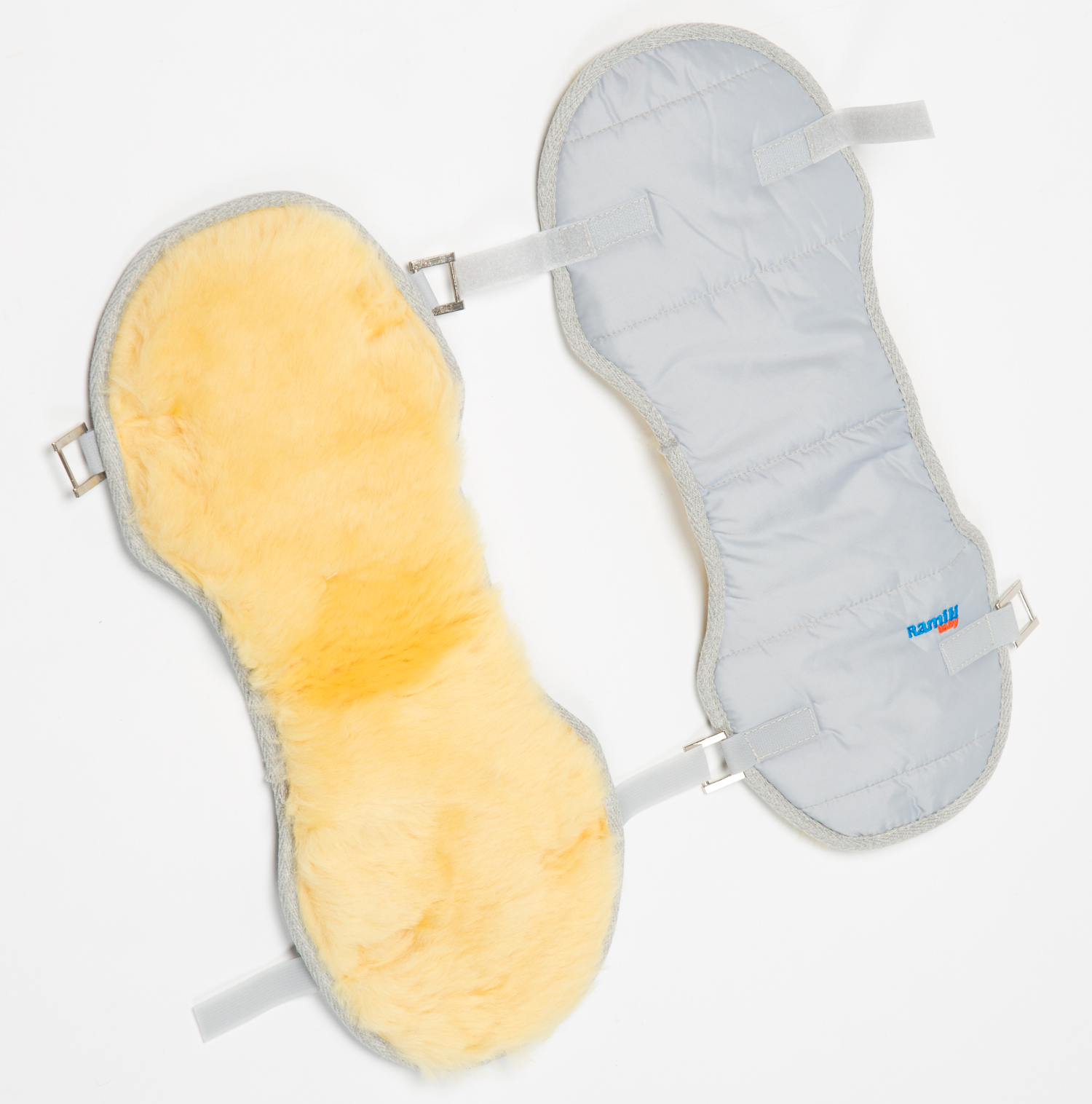 Раздельная муфта для рук состоит из двух частей, для левой и правой руки. Именно поэтому ее можно использовать во время прогулок и с коляской-люлькой,  и с прогулочной коляской. Муфта изготовлена из натуральной медицинской овчинки. В процессе производства такой овчинки не используется хром и прочие тяжелые металлы, благодаря чему овчинка не вызывает аллергии. Овчина – натуральный природный утеплитель, обладающий уникальными свойствами, которые позволяют использовать ее при уходе за новорожденными. Овчинка отлично защищает от холода, хорошо впитывает лишнюю влагу, обеспечивает микро-циркуляцию воздуха.