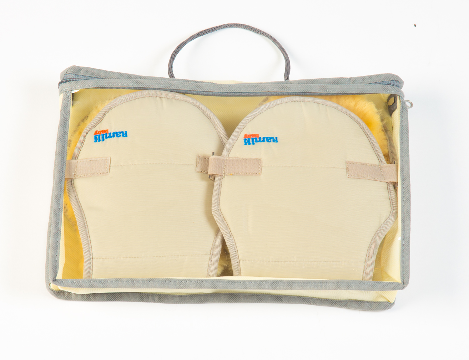 Раздельная муфта для рук состоит из двух частей, для левой и правой руки. Именно поэтому ее можно использовать во время прогулок и с коляской-люлькой,  и с прогулочной коляской. Муфта изготовлена из натуральной медицинской овчинки. В процессе производства такой овчинки не используется хром и прочие тяжелые металлы, благодаря чему овчинка не вызывает аллергии. Овчина – натуральный природный утеплитель, обладающий уникальными свойствами, которые позволяют использовать ее при уходе за новорожденными. Овчинка отлично защищает от холода, хорошо впитывает лишнюю влагу, обеспечивает микро-циркуляцию воздуха.