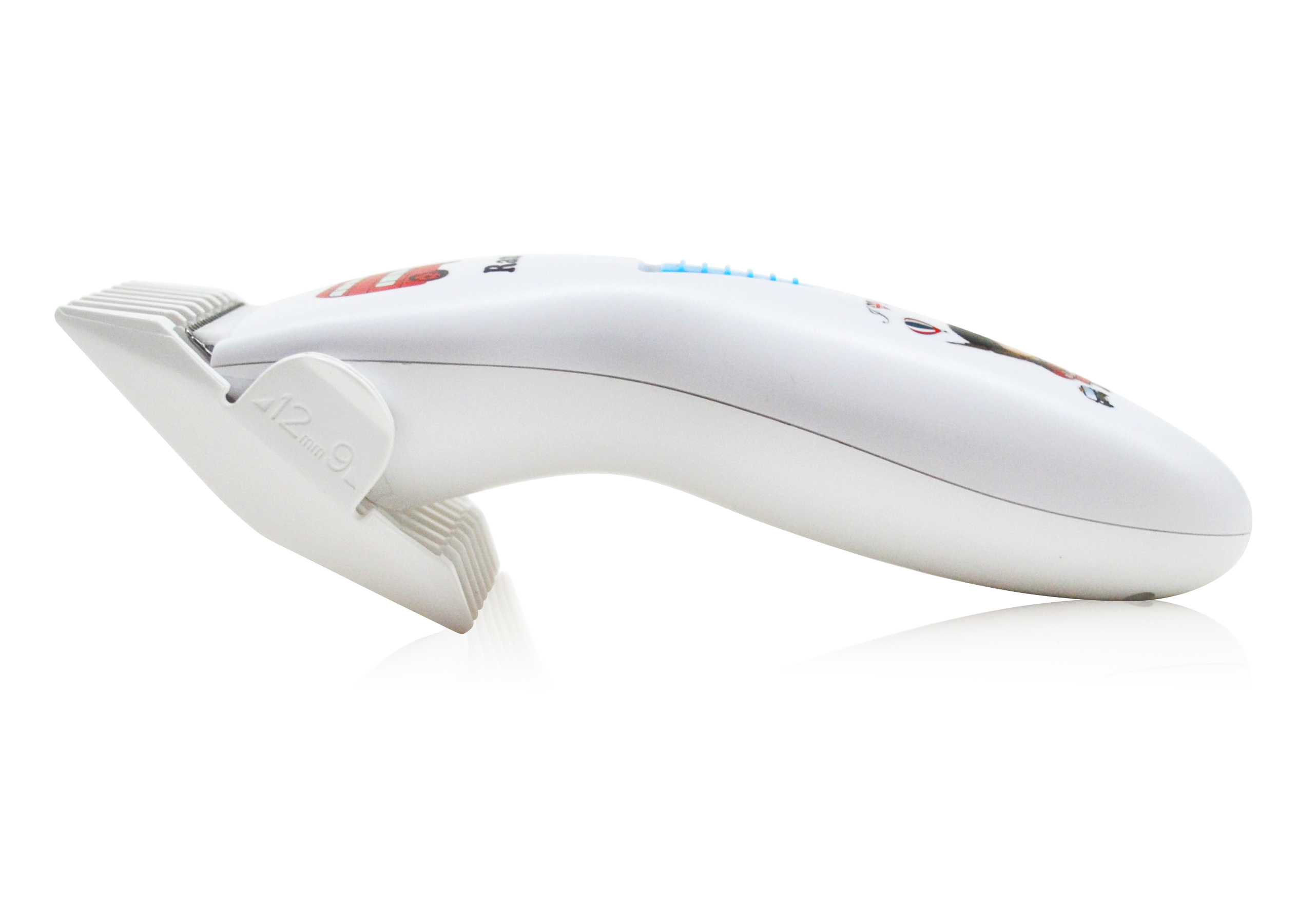 - Мощный двигатель упрощает и значительно ускоряет процесс детской стрижки.