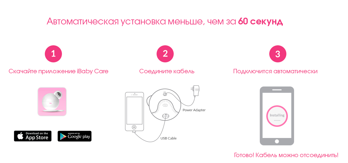 - Наблюдение через специальное приложение iBaby Care, которое доступно бесплатно в AppStore или в GooglePlay.
