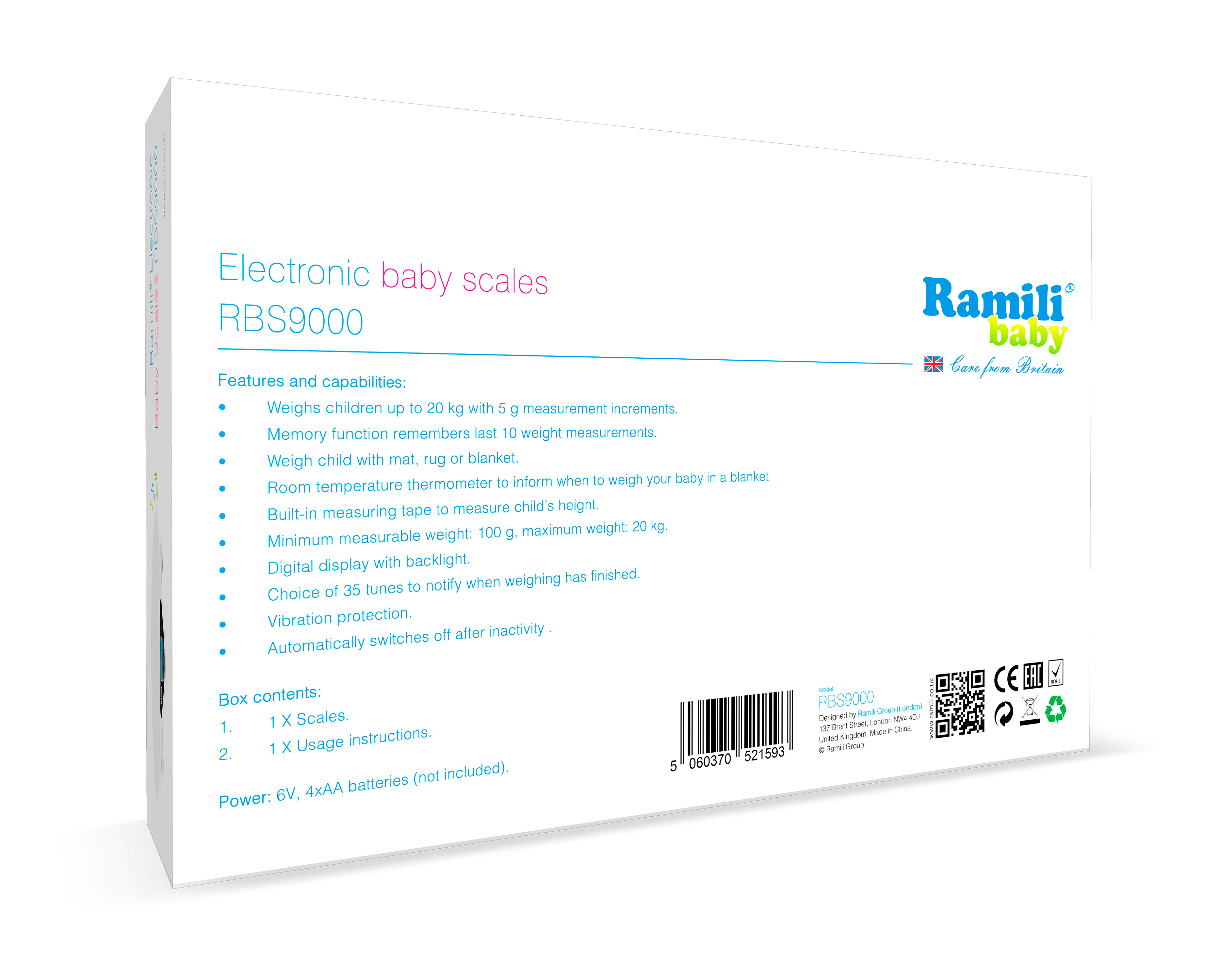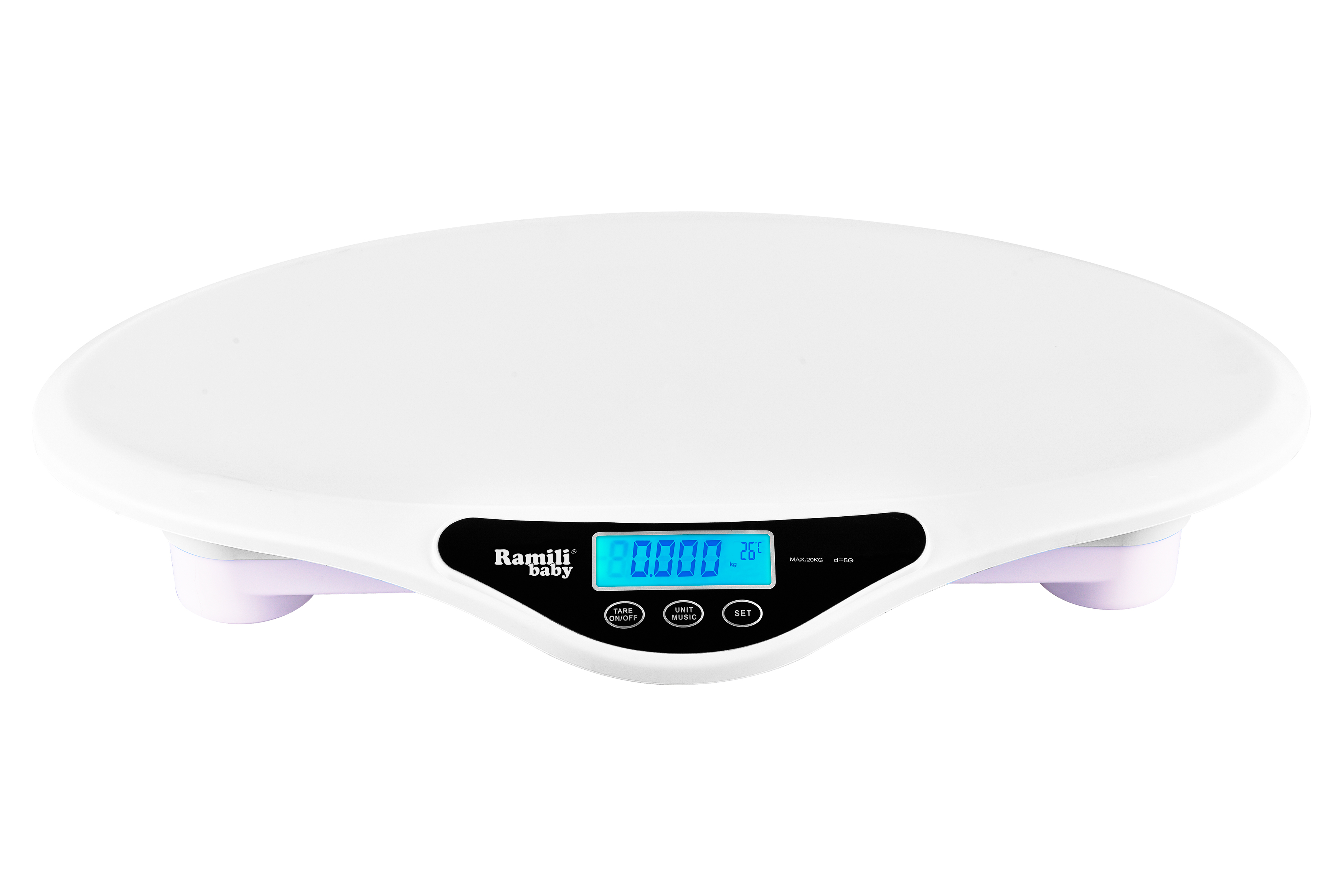 Детские электронные весы от известного производителя детских товаров – компании Ramili. Детские весы разработаны с учетом требований родителей с использованием современных технологий и материалов. Весы протестированы на современном оборудовании и позволяют родителям удобно, быстро и безопасно измерить вес новорожденного. Шаг измерения и погрешность составляют всего 5 граммов, а диапазон измерения от 100 гр. до 20 кг.
