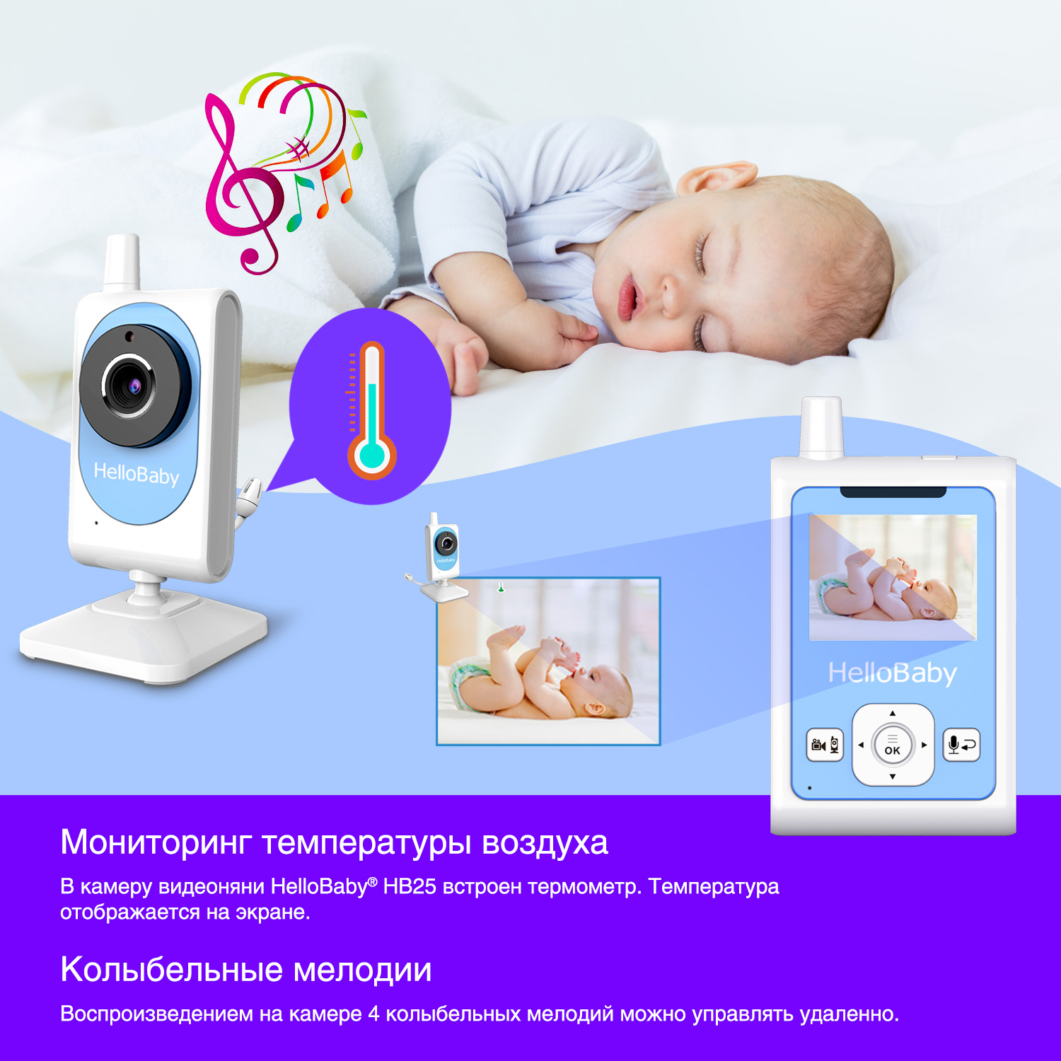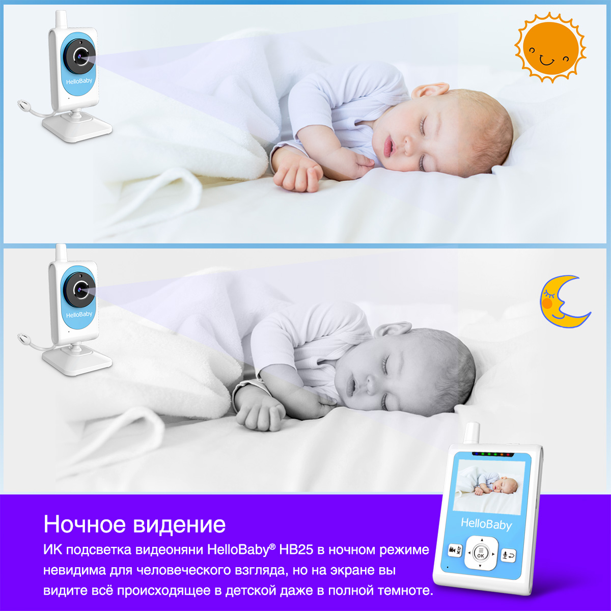 Особенности видеоняни HelloBaby HB25: