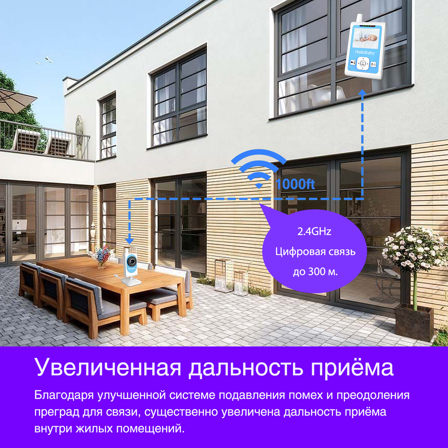 - Улучшенная система защиты от помех и преодоления преград существенно увеличивает дальность приёма внутри квартир и домов с несколькими преградами между блоками.