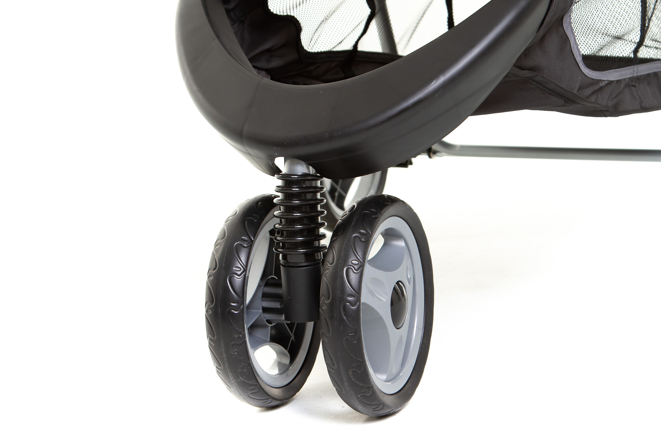 - Повышенная манёвренность и проходимость благодаря двойному поворотному переднему колесу и надёжным задним колесам.