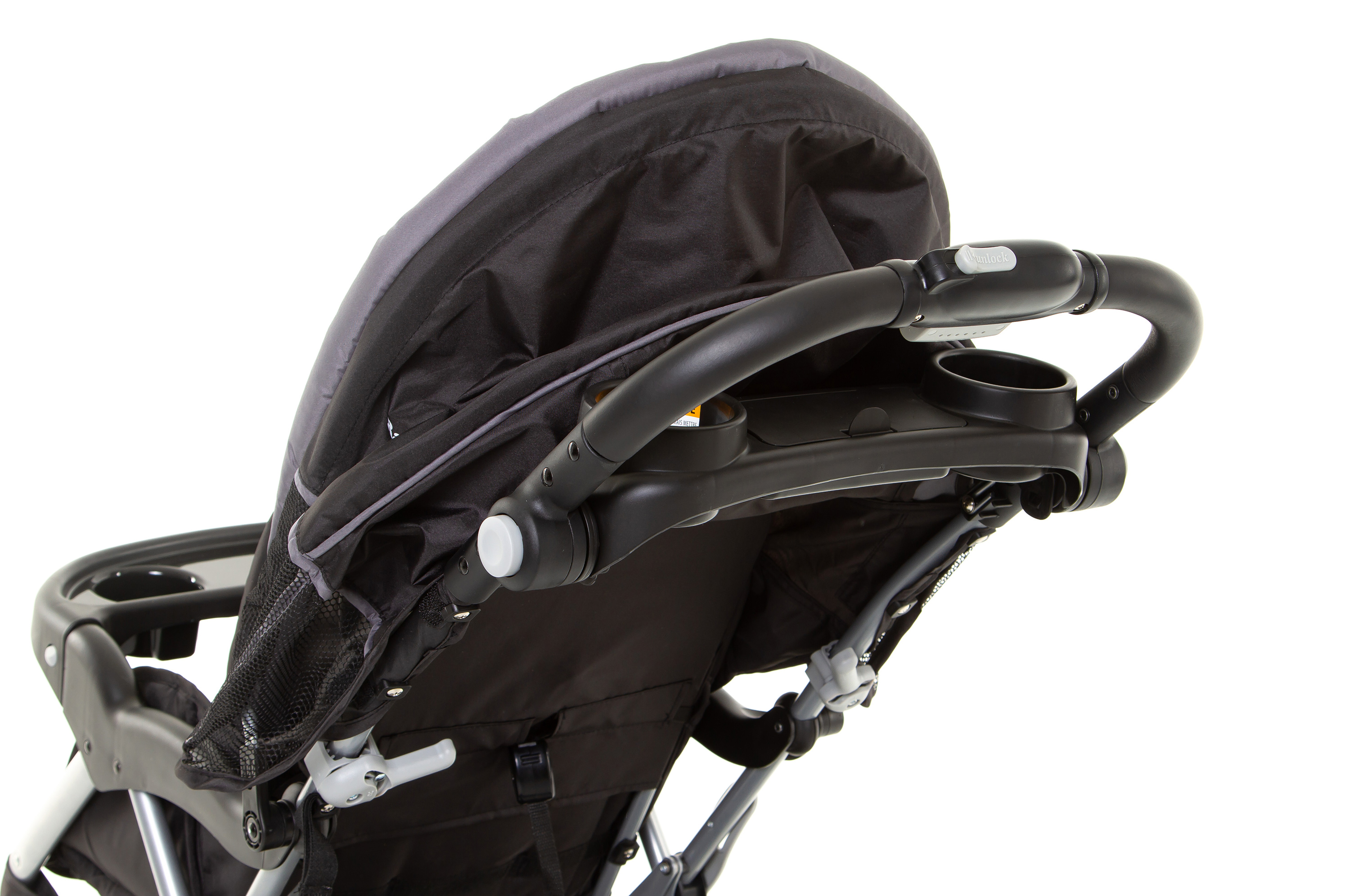- Съёмный поручень с подставкой для аксессуаров и бутылочек для малыша.