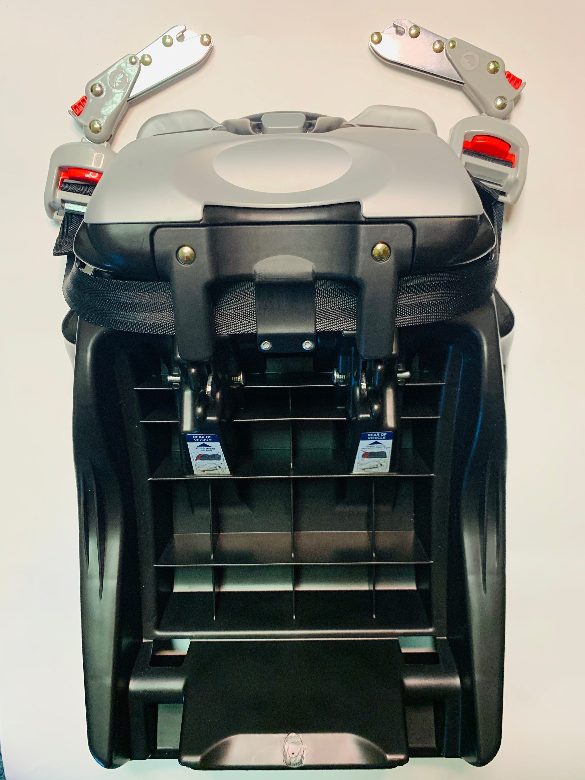 В комплект включена база, которая с помощью прочных кронштейнов в её основании надёжно крепится к элементам штатного автомобильного крепления IsoFix (Latch). Это особенно удобно, поскольку для крепления базы не требуется использование ремня безопасности автомобиля.