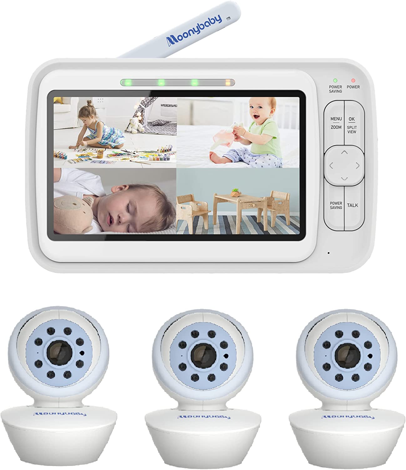 Видеоняня Moonybaby 55985PX3 оснащена большим экраном 12,7 см. и поворотной камерой, и возможностью подключения до 4 камер и одновременно отображать их на разделенном экране quad view.
