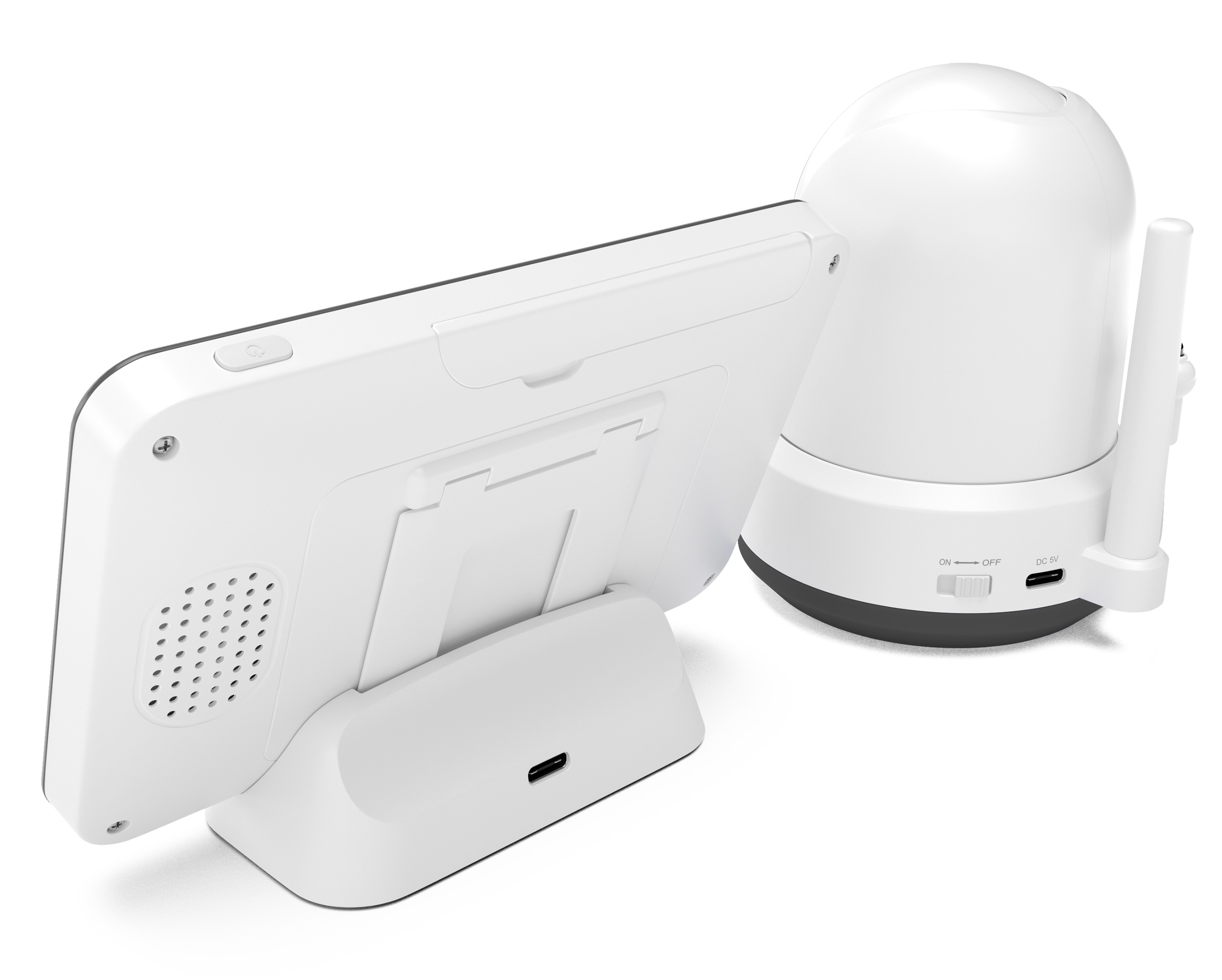 - Питание родительского блока возможно от сети или встроенного аккумулятора (разъём питания монитора USB Type-C);