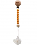 Подвеска с клипсой для соски-пустышки подходит для коляски, кроватки, автокресла т.д. Изготовлена из высококачественных тактильно приятных материалов.