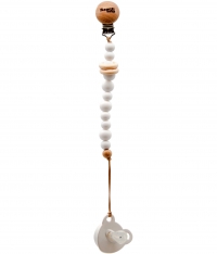 Подвеска с клипсой для соски-пустышки подходит для коляски, кроватки, автокресла т.д. Изготовлена из высококачественных тактильно приятных материалов.