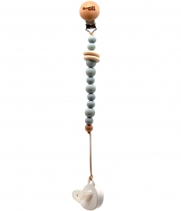 Подвеска с клипсой для соски-пустышки подходит для коляски, кроватки, автокресла т.д. Изготовлена из высококачественных тактильно приятных материалов.