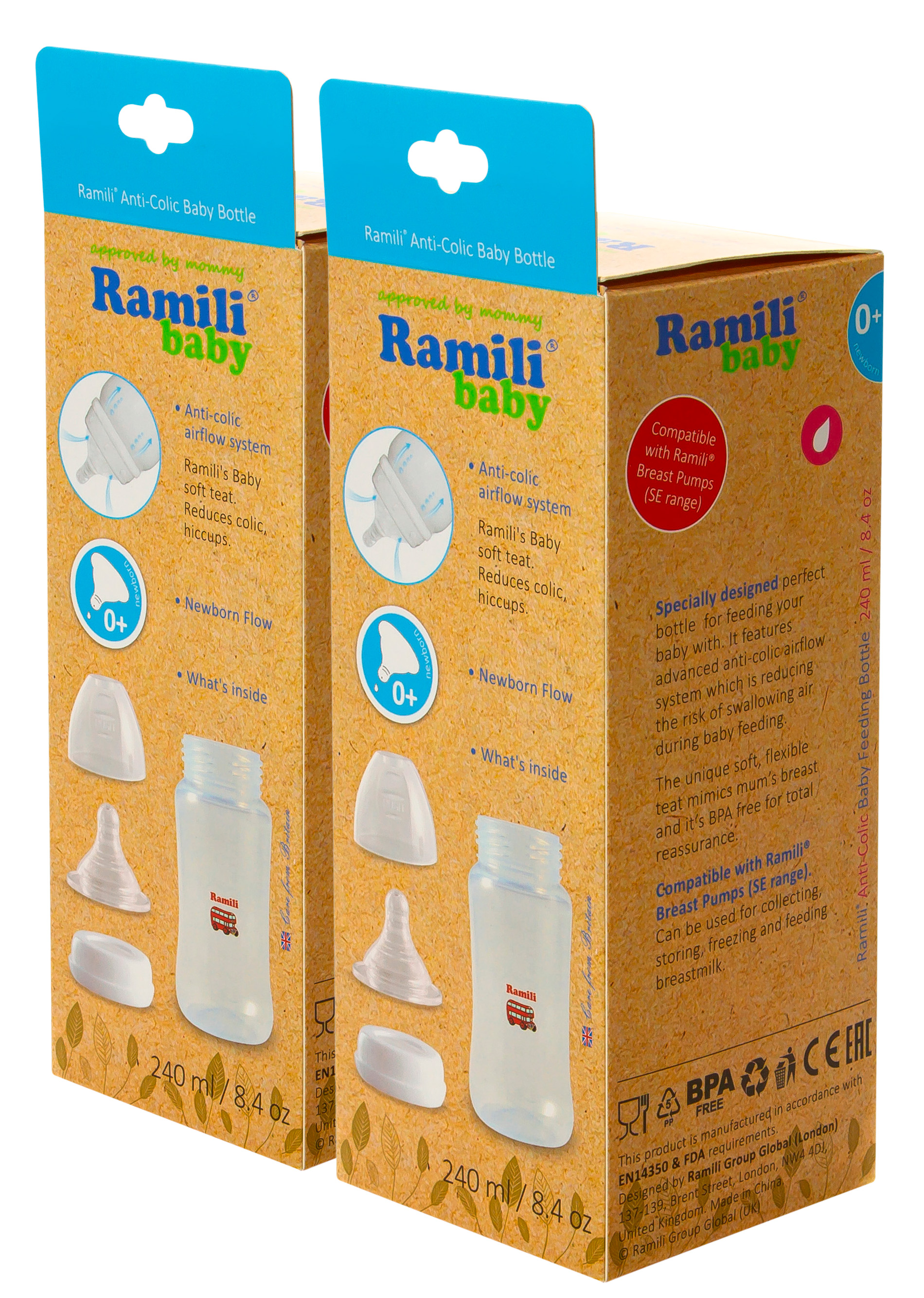 Две противоколиковые бутылочки для кормления Ramili Baby 240MLX2