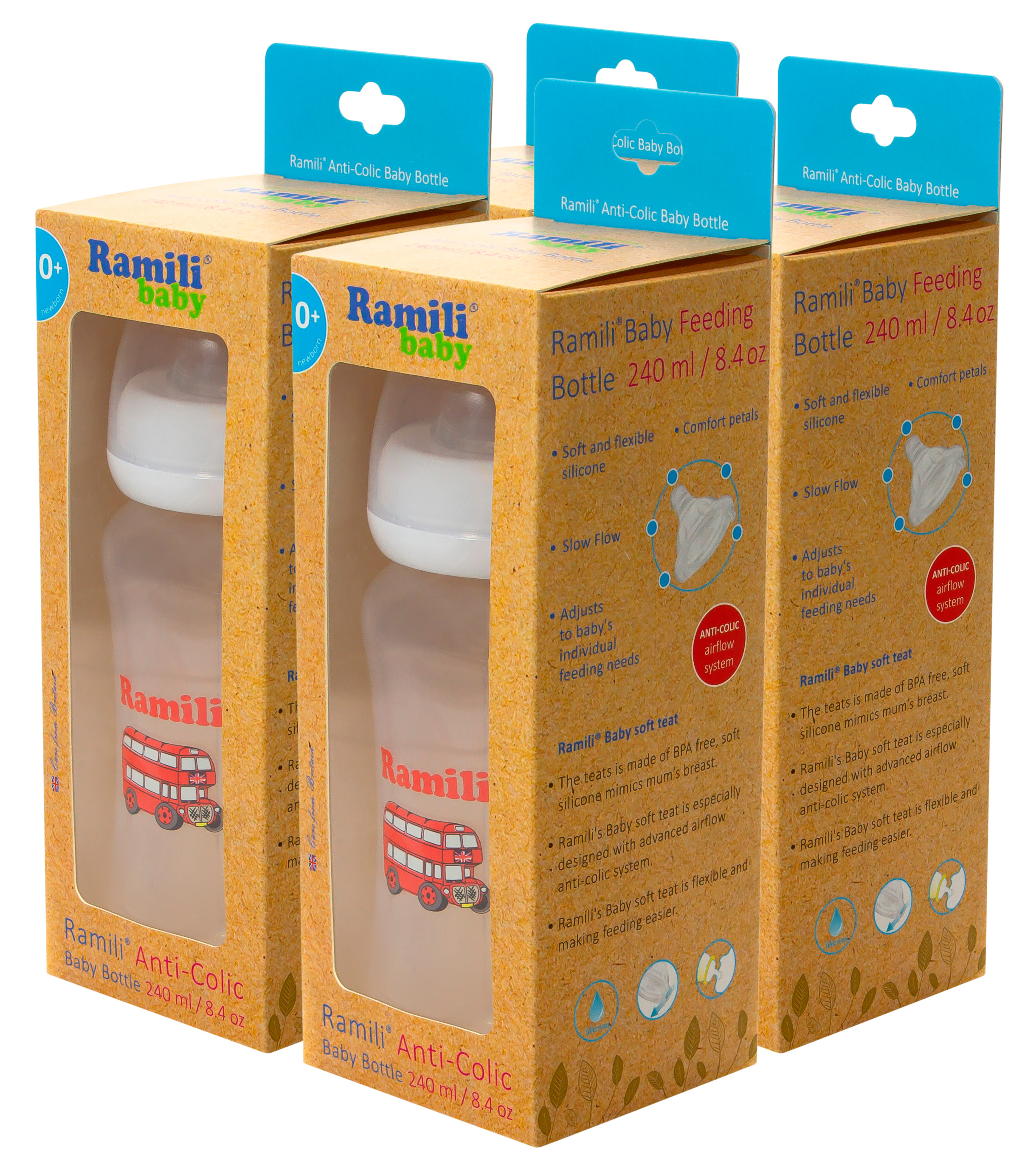 Четыре противоколиковые бутылочки для кормления Ramili Baby 240MLX4