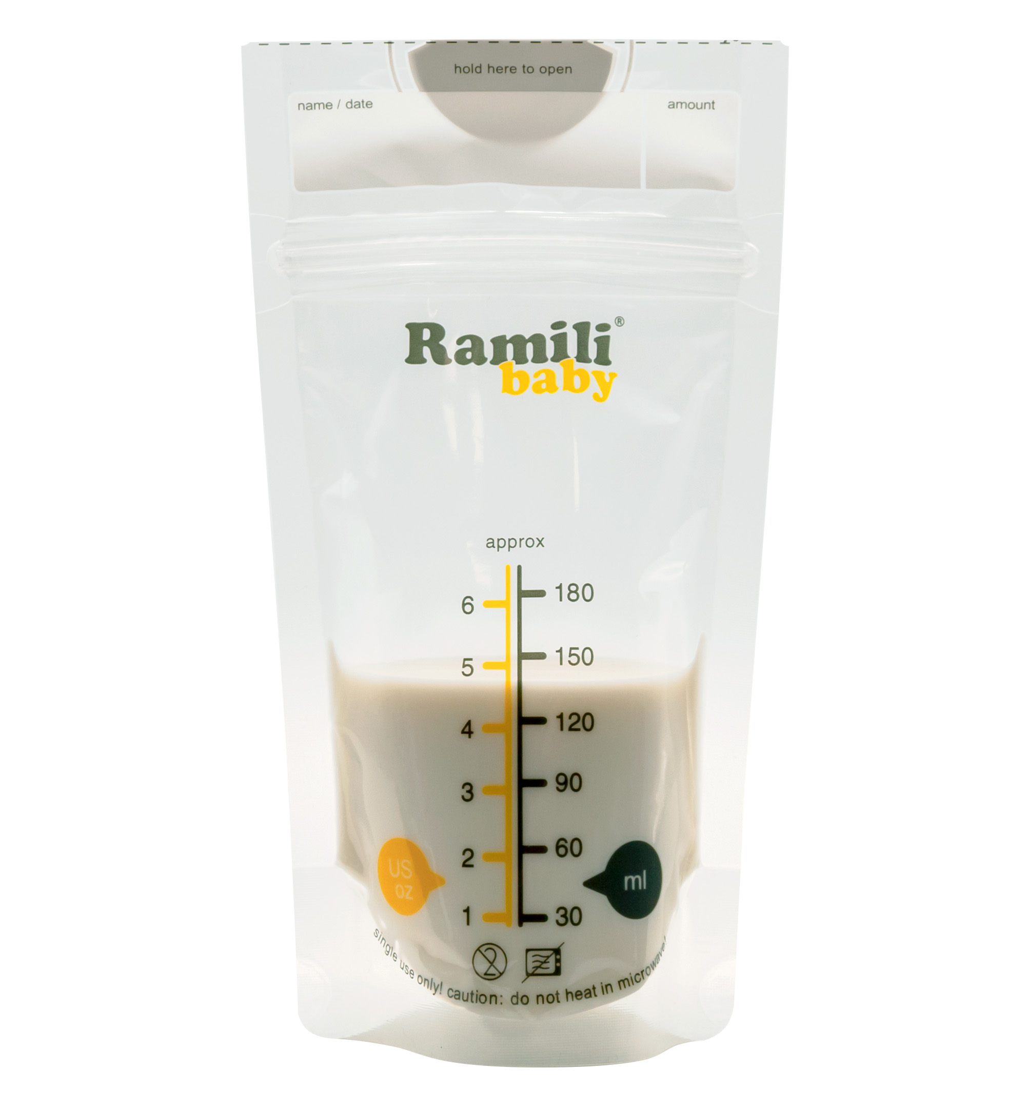В упаковке 30 пакетов объемом по 180 мл. Пакеты для хранения и заморозки грудного молока Ramili® изготовлены из безопасных материалов с применением самых передовых технологий. Стерильно упакованы на современном оборудовании, не содержат бисфенол-А.
