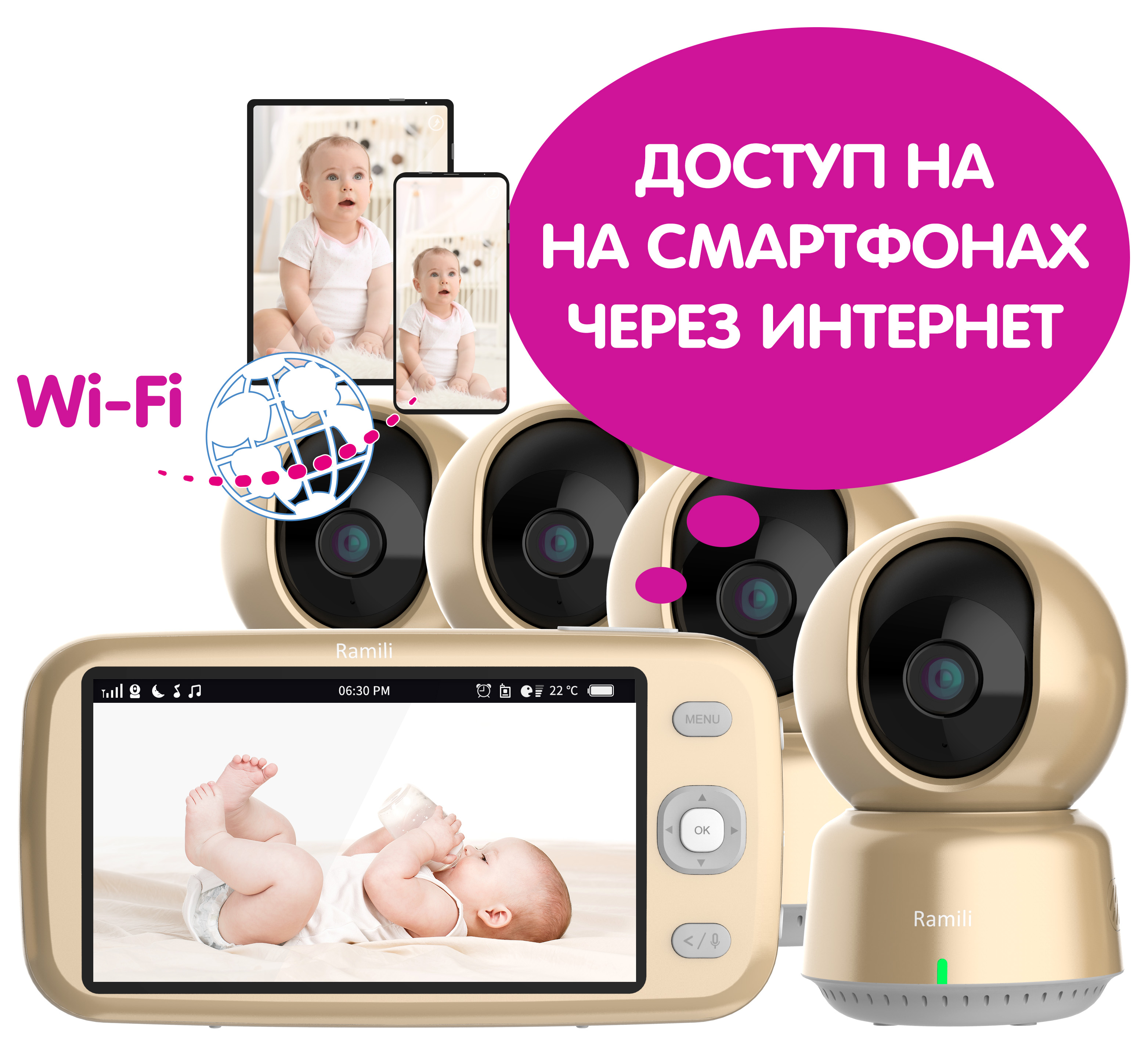 В комплект этой видеоняни входят четыре камеры. Видеоняня Ramili Baby RV1600X4 с доступом через интернет – это передовое устройство для присмотра за ребенком, которое обеспечивает спокойствие и комфорт для родителей. Включает в себя камеру и монитор, которые позволяют наблюдать за малышом на расстоянии до 400 метров с родительского блока при оптимальных условиях для связи и на неограниченном расстоянии с экрана смартфона или планшета через удобное приложение из любой точки мира, обеспечивая спокойствие для родителей и безопасность для ребенка.