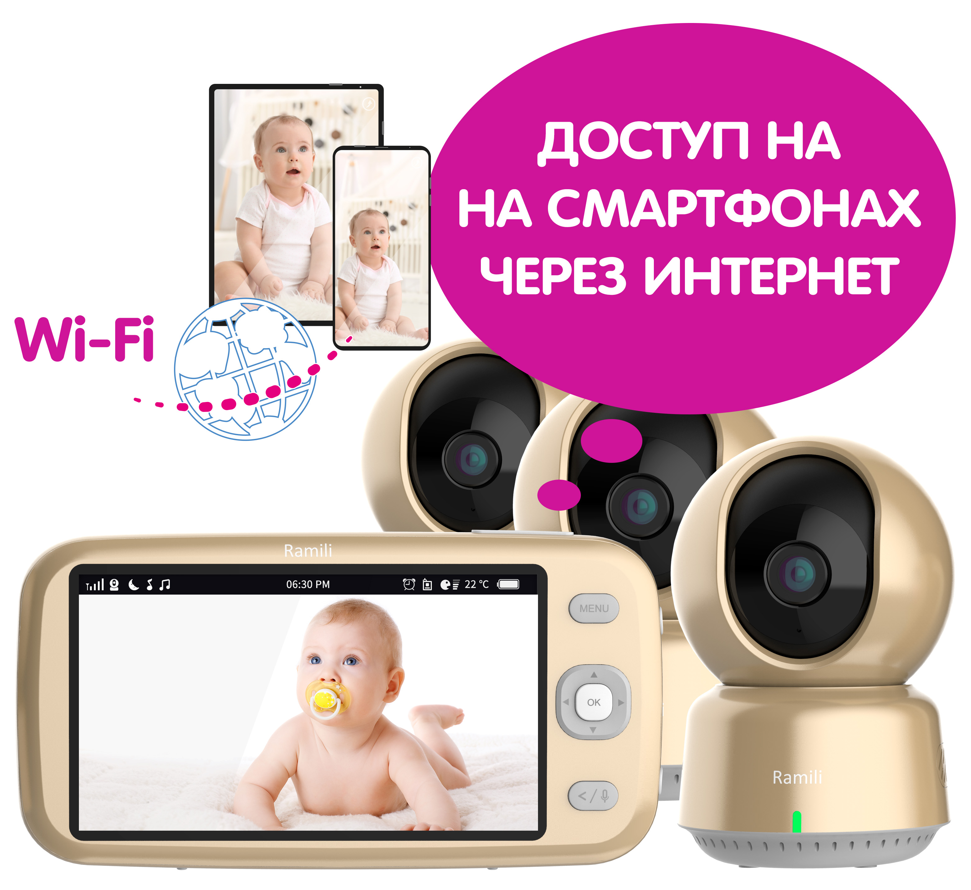 В комплект этой видеоняни входят три камеры. Видеоняня Ramili Baby RV1600X3 с доступом через интернет – это передовое устройство для присмотра за ребенком, которое обеспечивает спокойствие и комфорт для родителей. Включает в себя камеру и монитор, которые позволяют наблюдать за малышом на расстоянии до 400 метров с родительского блока при оптимальных условиях для связи и на неограниченном расстоянии с экрана смартфона или планшета через удобное приложение из любой точки мира, обеспечивая спокойствие для родителей и безопасность для ребенка.