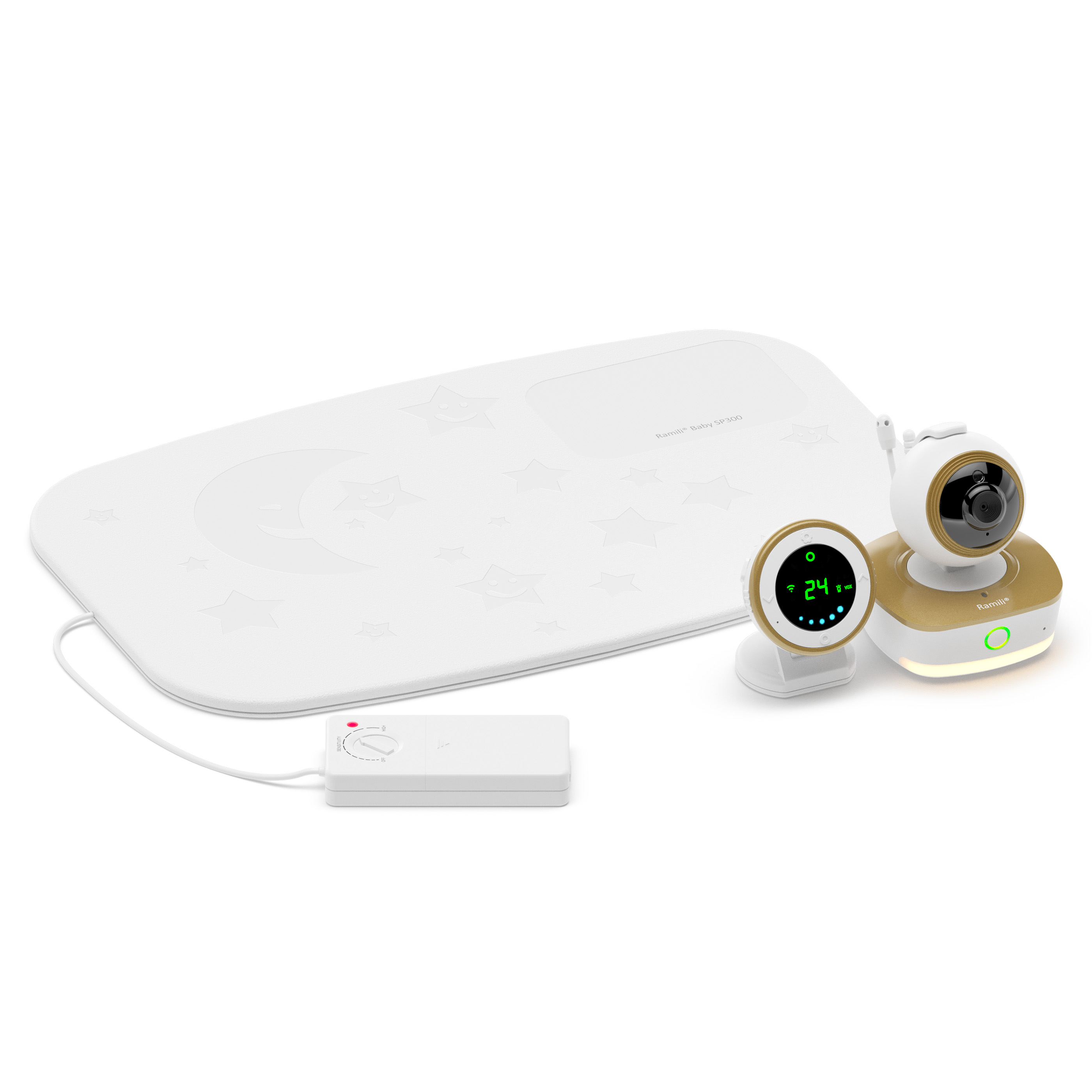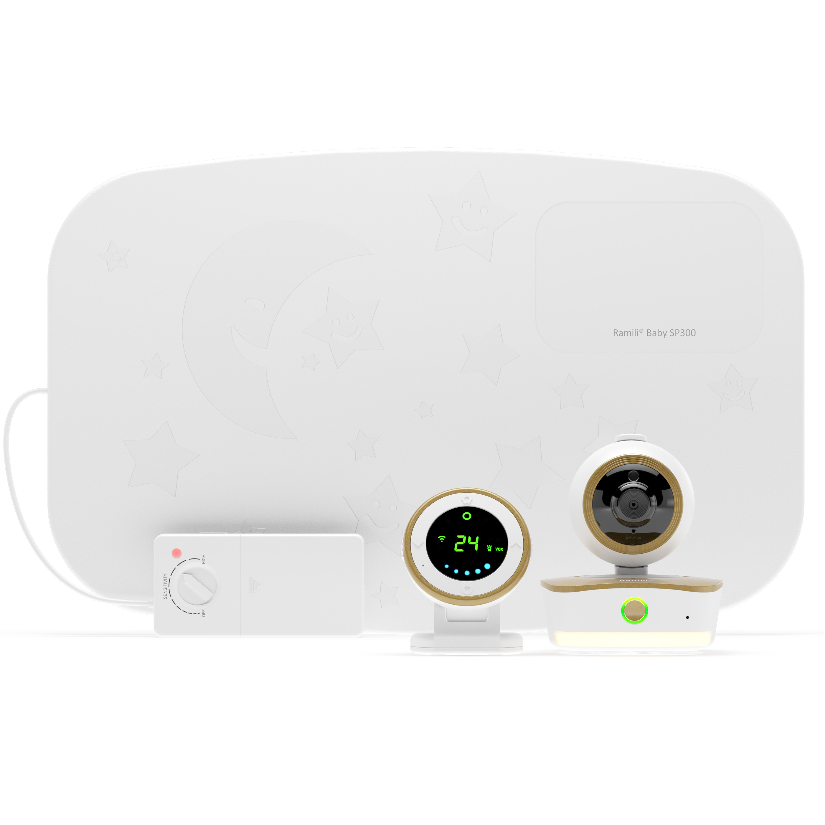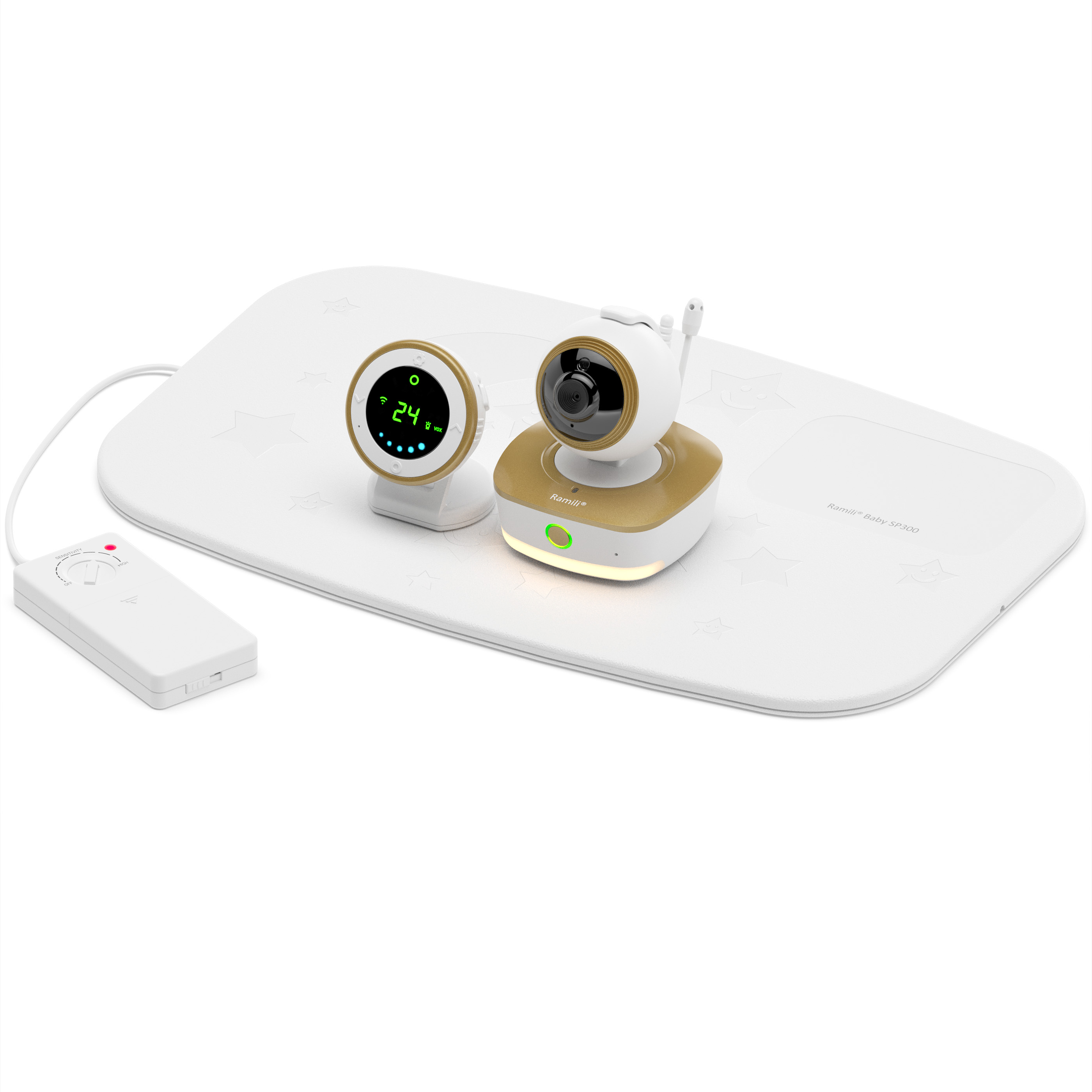 Монитор дыхания Ramili Baby RV1800SP и радио-видеоняня представляет из себя цифровую систему, в комплект которой включен специальный беспроводной коврик с высокочувствительными сенсорами. Коврик располагается под матрасиком детской кроватки и фиксирует движения, создаваемые в процессе дыхания малыша. Если такие движения не фиксируются, то на родительский блок приходит сигнал тревоги. Сенсорный коврик Ramili Baby SP300 связан по беспроводной связи с камерой, а камера с родительским блоком.