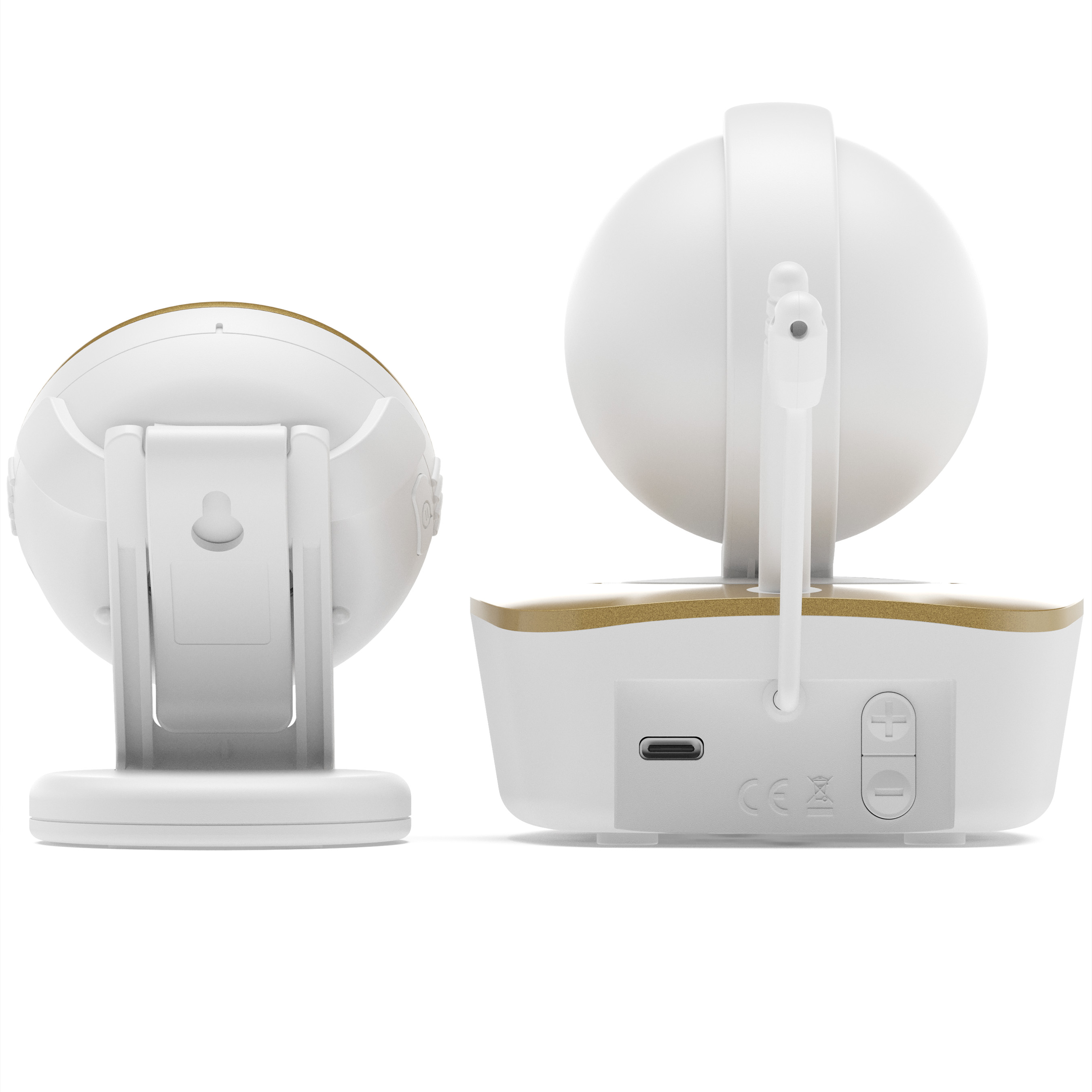 - Мягкий LED-ночничок на камере, как и колыбельные мелодии, помогает малышу отвлечься и не тревожиться. Управляется с родительского блока или в приложении. Может включаться при обнаружении звука/плача.