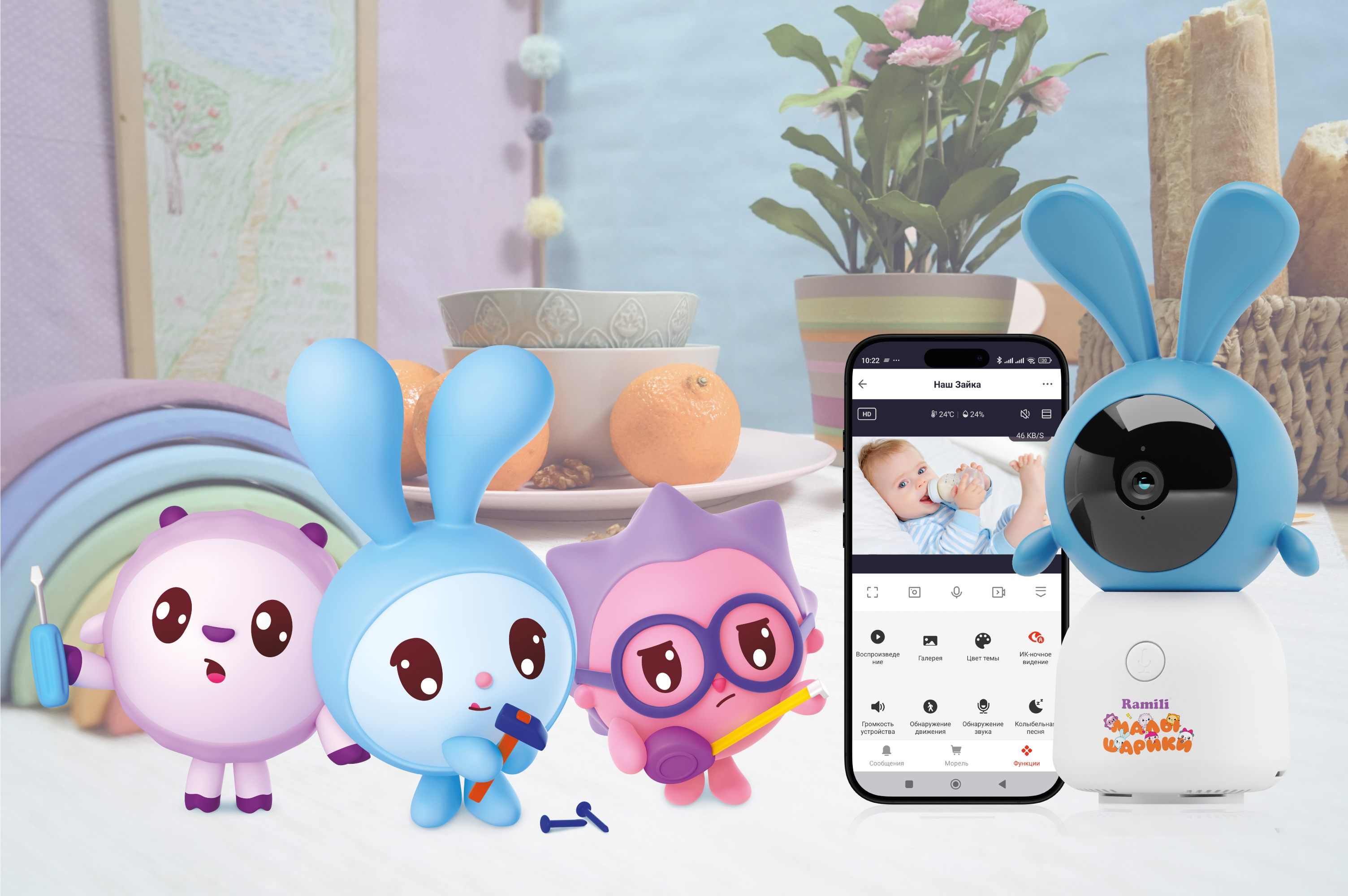 Особенности видеоняни Ramili Baby RV100CKROSH Крошик, Малышарики:
