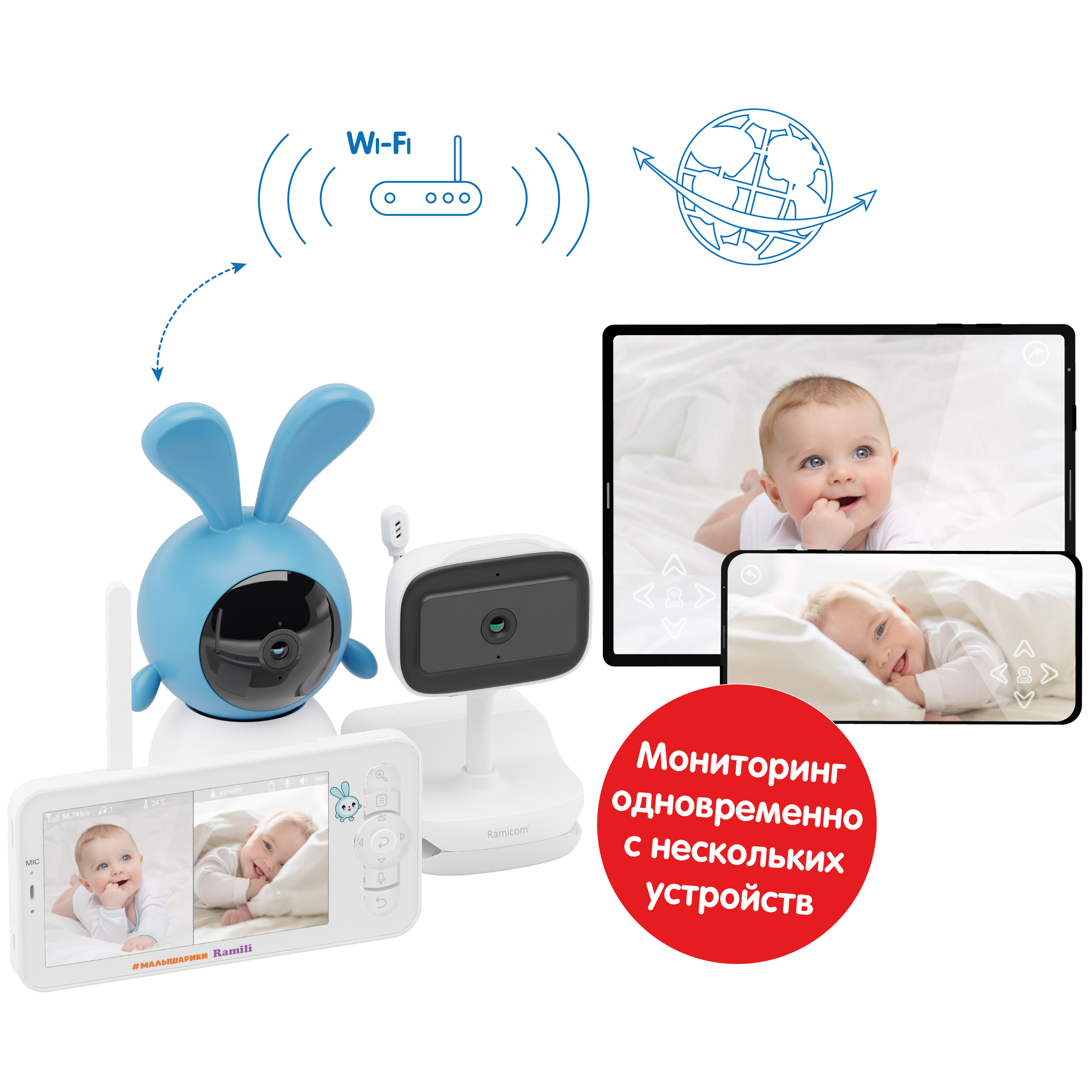 Эта модель оснащена всеми необходимыми функциями, а дальность между блоками при оптимальных условиях беспроводной связи может достигать 300 метров. Для мониторинга на более удаленном расстоянии обе камеры видеоняни можно подключить к домашней сети Wi-Fi, а затем наблюдать или общаться с малышом через удобное приложение на вашем смартфоне или планшете из любой точки мира через интернет.