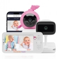 В комплект этой видеоняни входит монитор и две камеры. Одна камера с поворотным механизмом. Вторая камера с креплением-прищепкой на гибкой ножке и встроенным аккумулятором. Цифровая видеоняня от известного производителя детских товаров высокого качества с обнаружением движения и датчиком звука, которые оповещают родителей, если малыш проснется. Видеоняня отличается надёжной связью, хорошим видеоизображением и звуком. В каждую камеру встроен многоцветный ночничок, который наполняет детскую комнату мягким LED-светом, помогая малышу спокойно заснуть. Предусмотрены термометр, гигрометр для измерения влажности и возможность записывать видео на карту памяти.