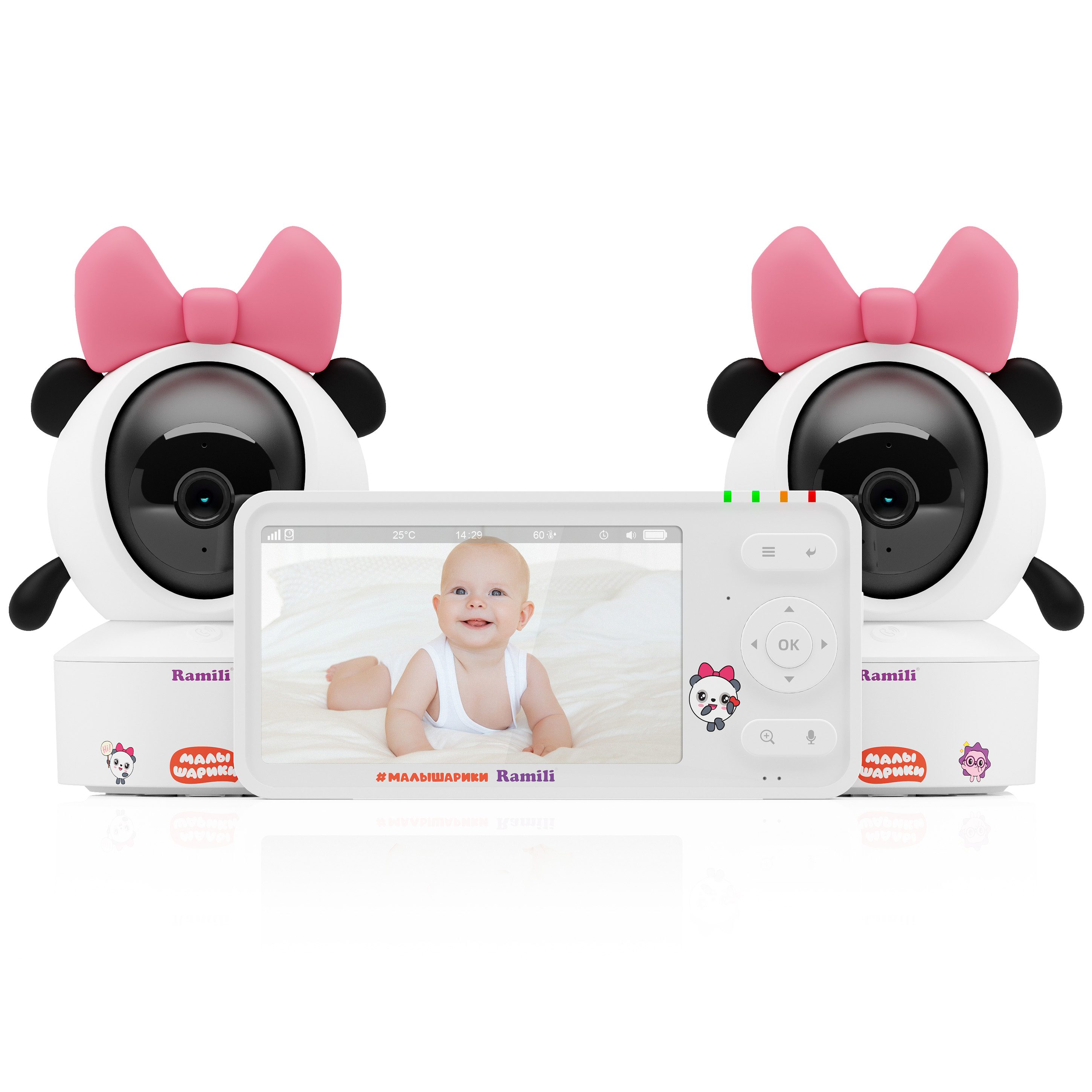 В наборе две камеры и родительский блок. Дизайн этой видеоняни Ramili Baby RV700X2PANDA выполнен по мотивам серии популярных мультфильмов для самых маленьких зрителей – Малышарики. Уникальный и забавный дизайн камеры порадует малыша и отлично впишется в интерьер любой детской комнаты.