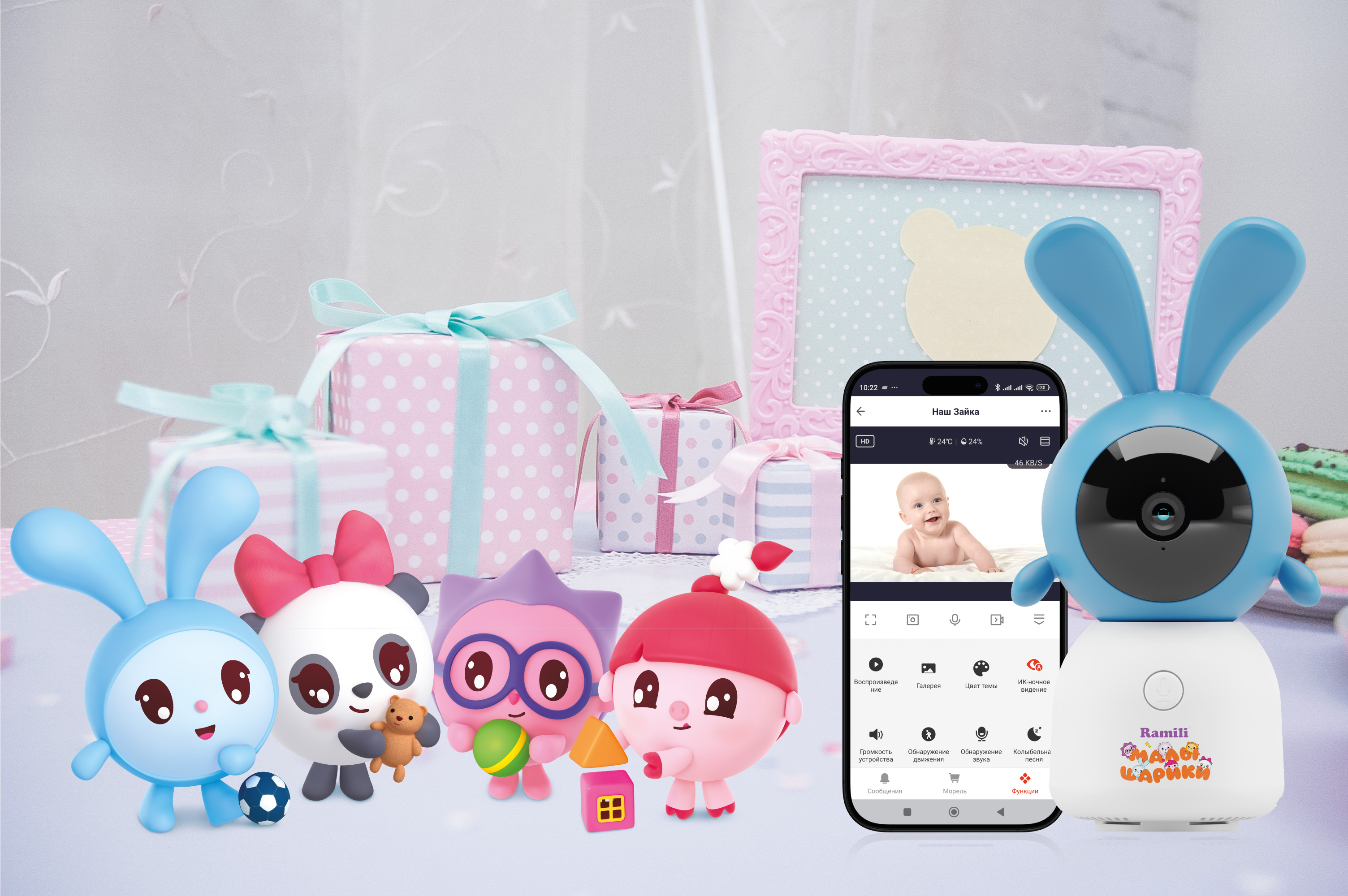 Wi-Fi 2K Видеоняня Ramili Baby RV100CKROSH Крошик, Малышарики – это надёжное устройство для комфортного удаленного наблюдения за ребенком внутри дома и далеко за его пределами. Благодаря современных технологиям и использованию передовых компонентов Ramili Baby RV100C можно назвать одной из самых безопасных устройств для удаленного наблюдения за ребенком. Эта модель не потеряет своей актуальности для родителей, ведь с помощью камеры можно не только контролировать малыша или работу няни. Когда малыш подрастет, камера послужит устройством безопасности для наблюдения за домом или, например, за домашним питомцем.