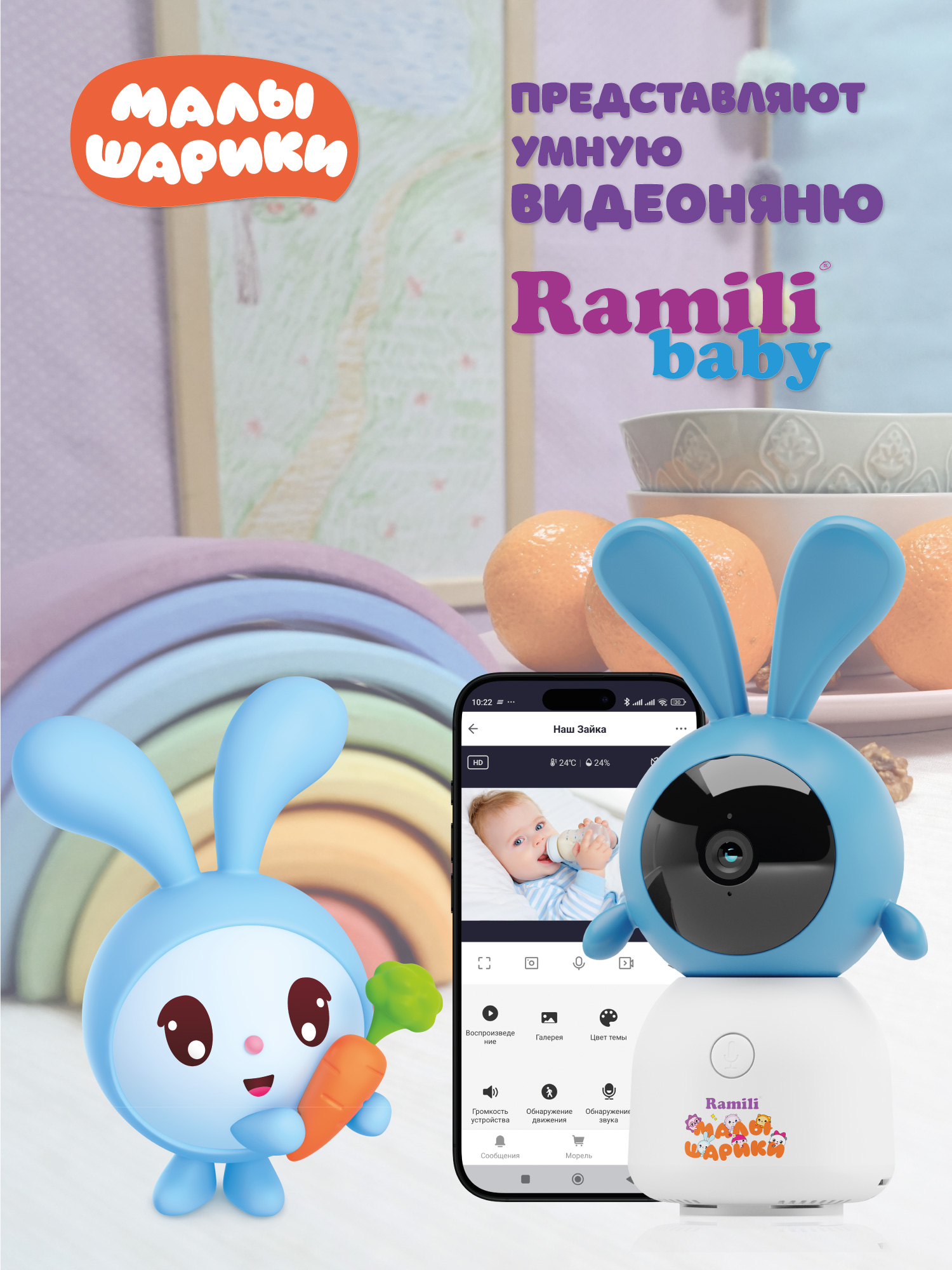 Особенности видеоняни Ramili Baby RV100CKROSH Крошик, Малышарики:
